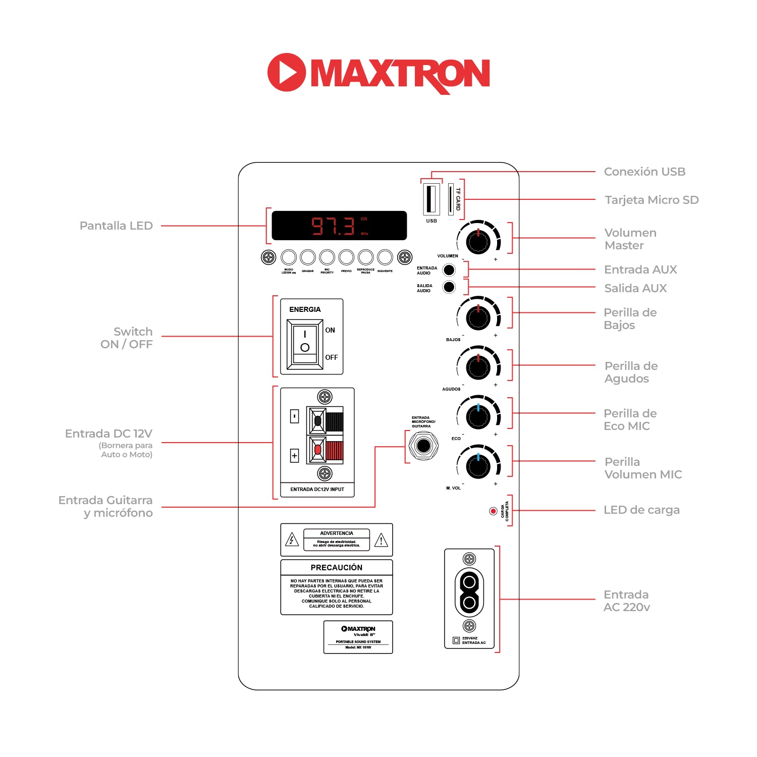 Perillas | - Perillas de Volumen - Perillas de Ecualizador (Bajos, Agudos) - Perillas de Echo - Perillas de Volumen de Micrófono |