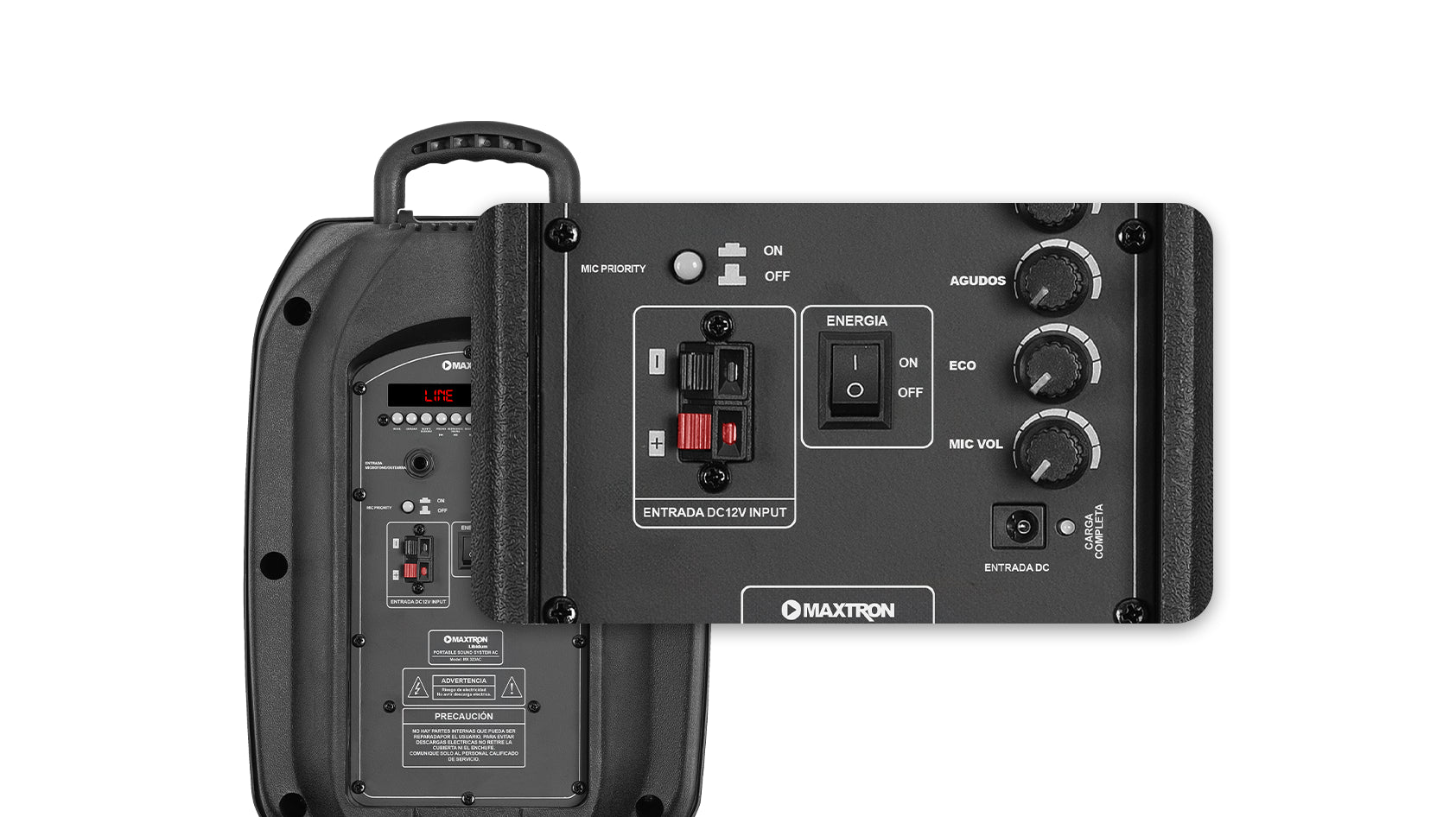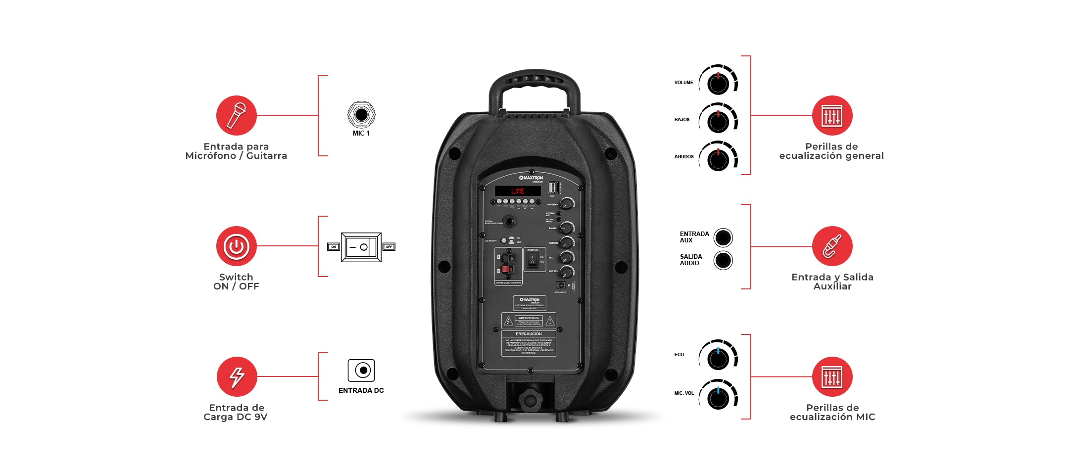 - Entrada Auxiliar 6.35mm de Micrófono/Guitarra
