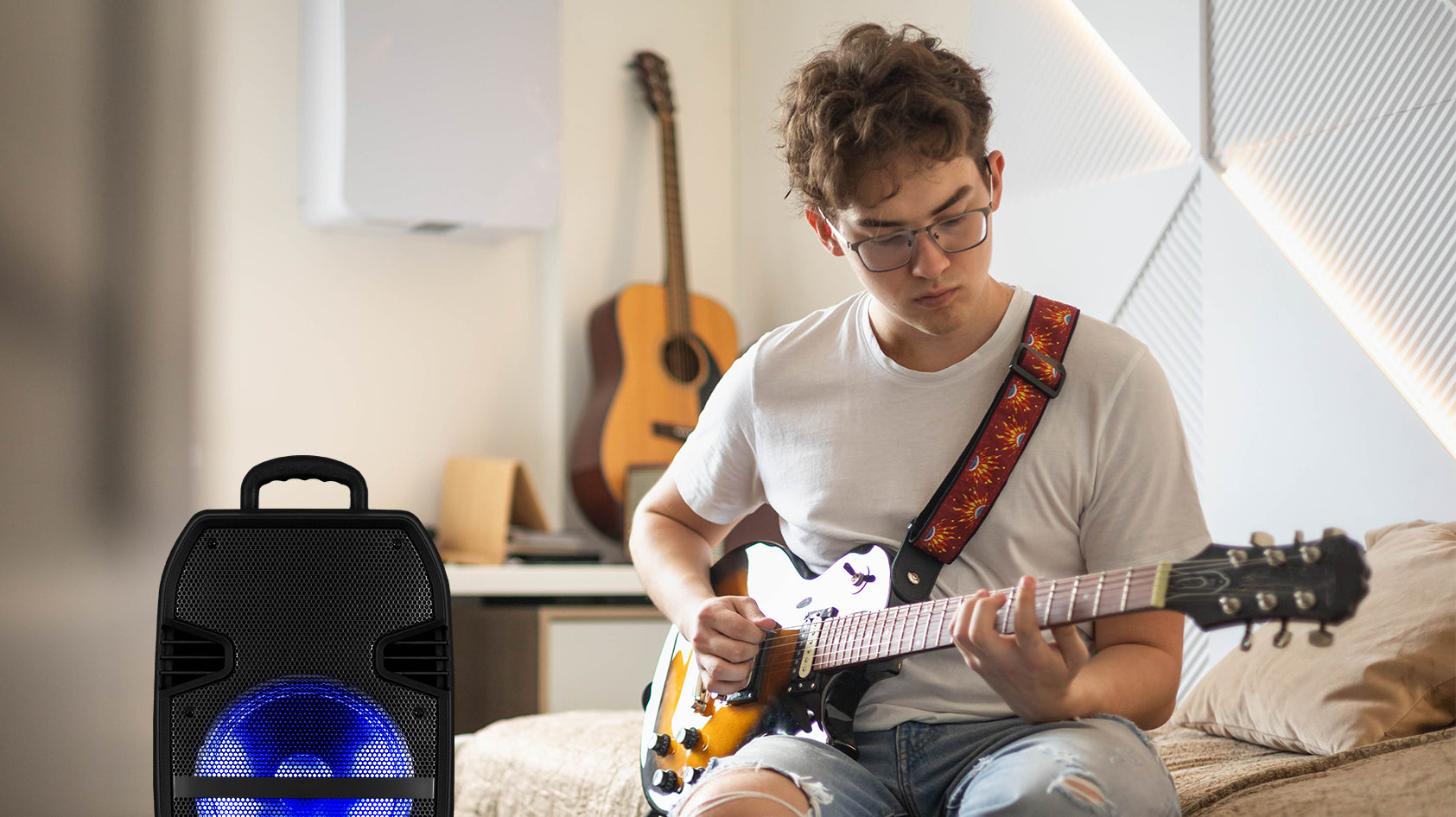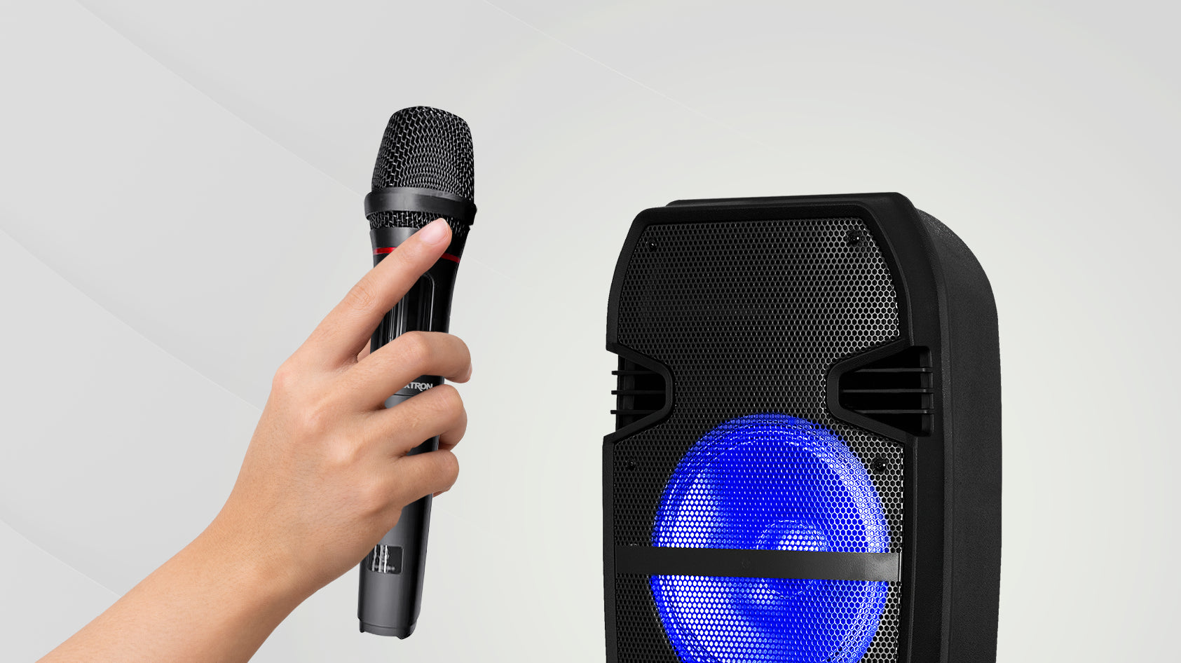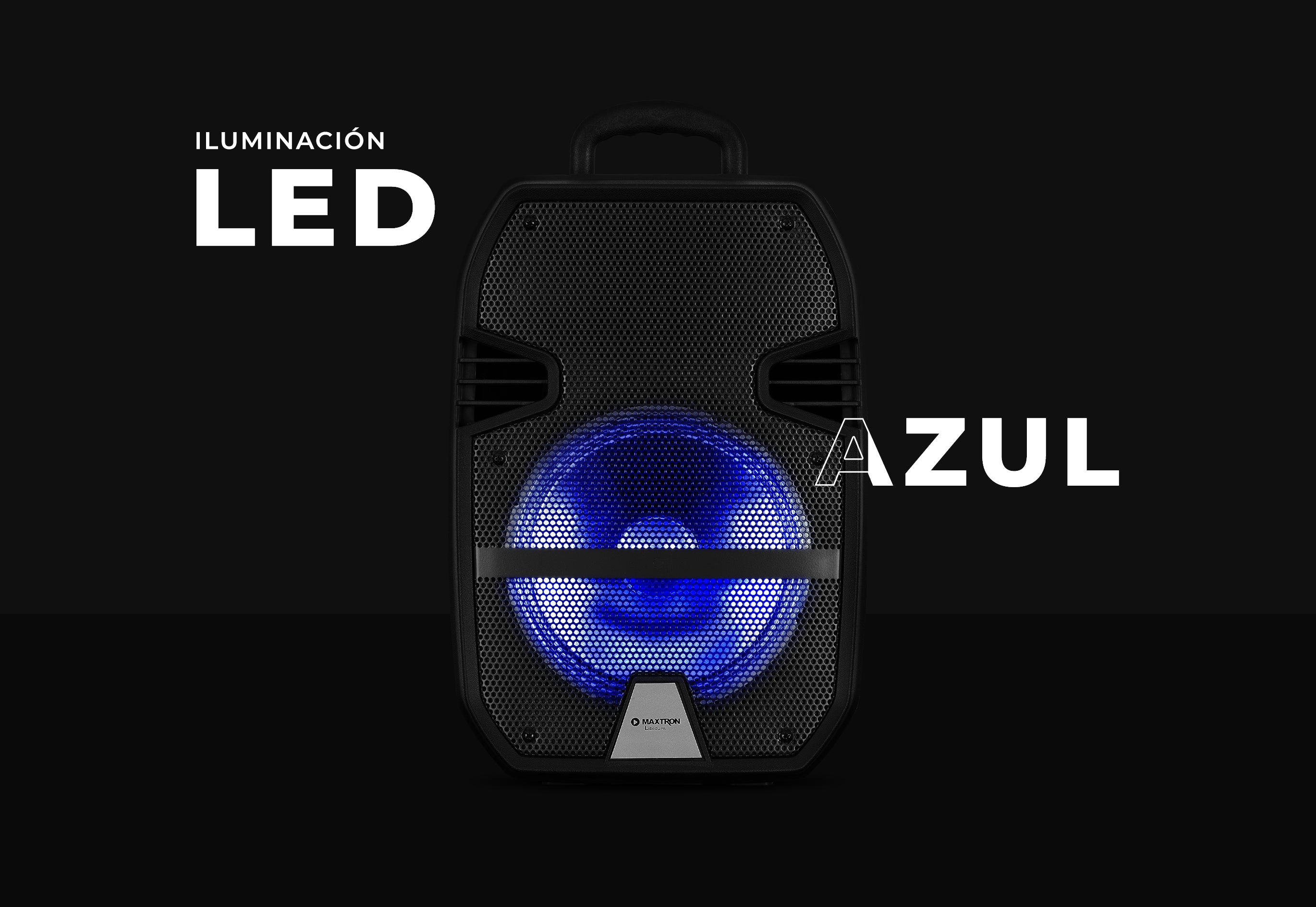 La iluminación AZUL crea un ambiente de fiesta único. Con colores vibrantes y efectos de iluminación dinámicos, el parlante será el centro de atención en cualquier evento.