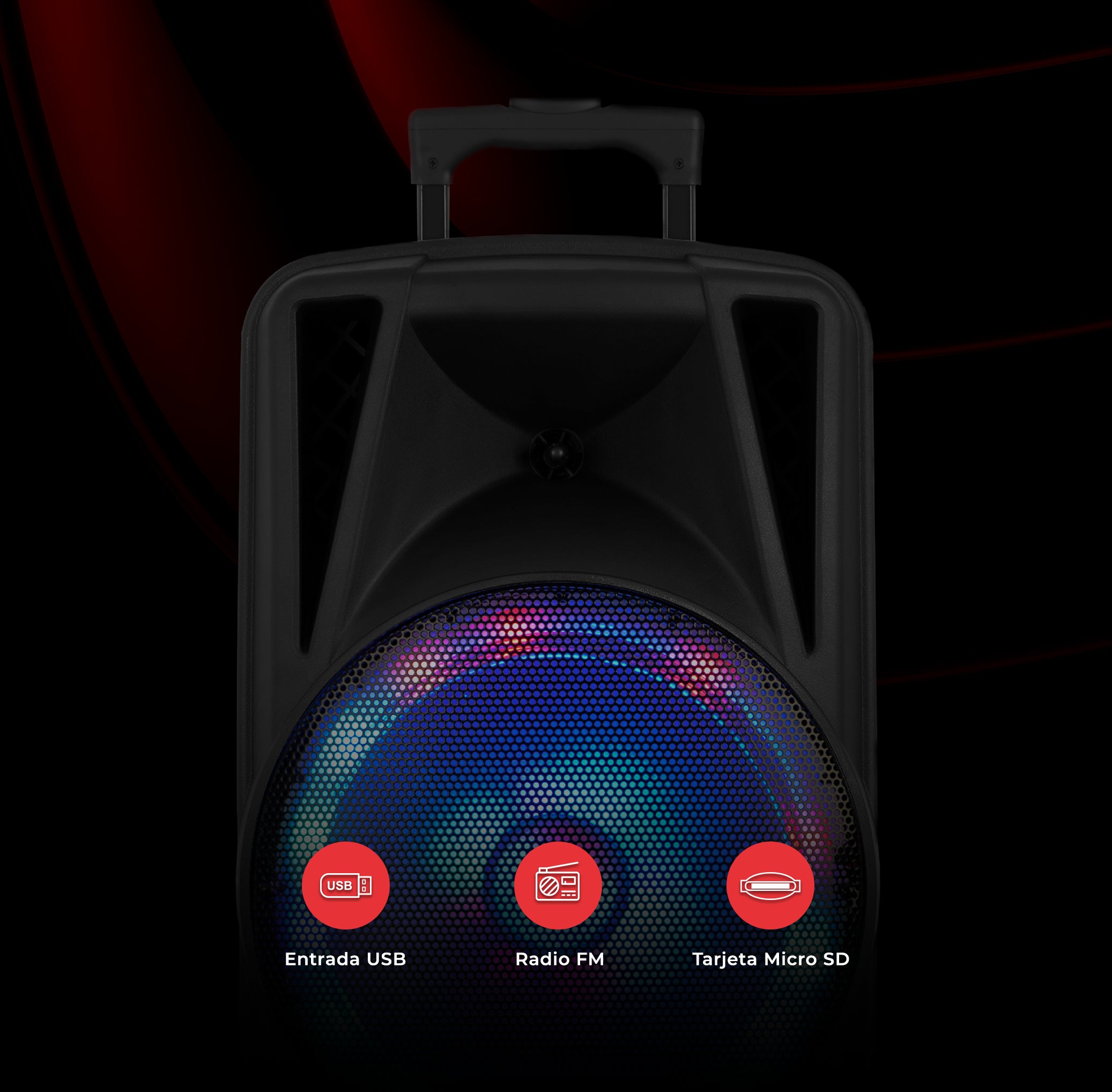 La iluminación RGB crea un ambiente de fiesta único. Con colores vibrantes y efectos de iluminación dinámicos, el parlante será el centro de atención en cualquier evento.