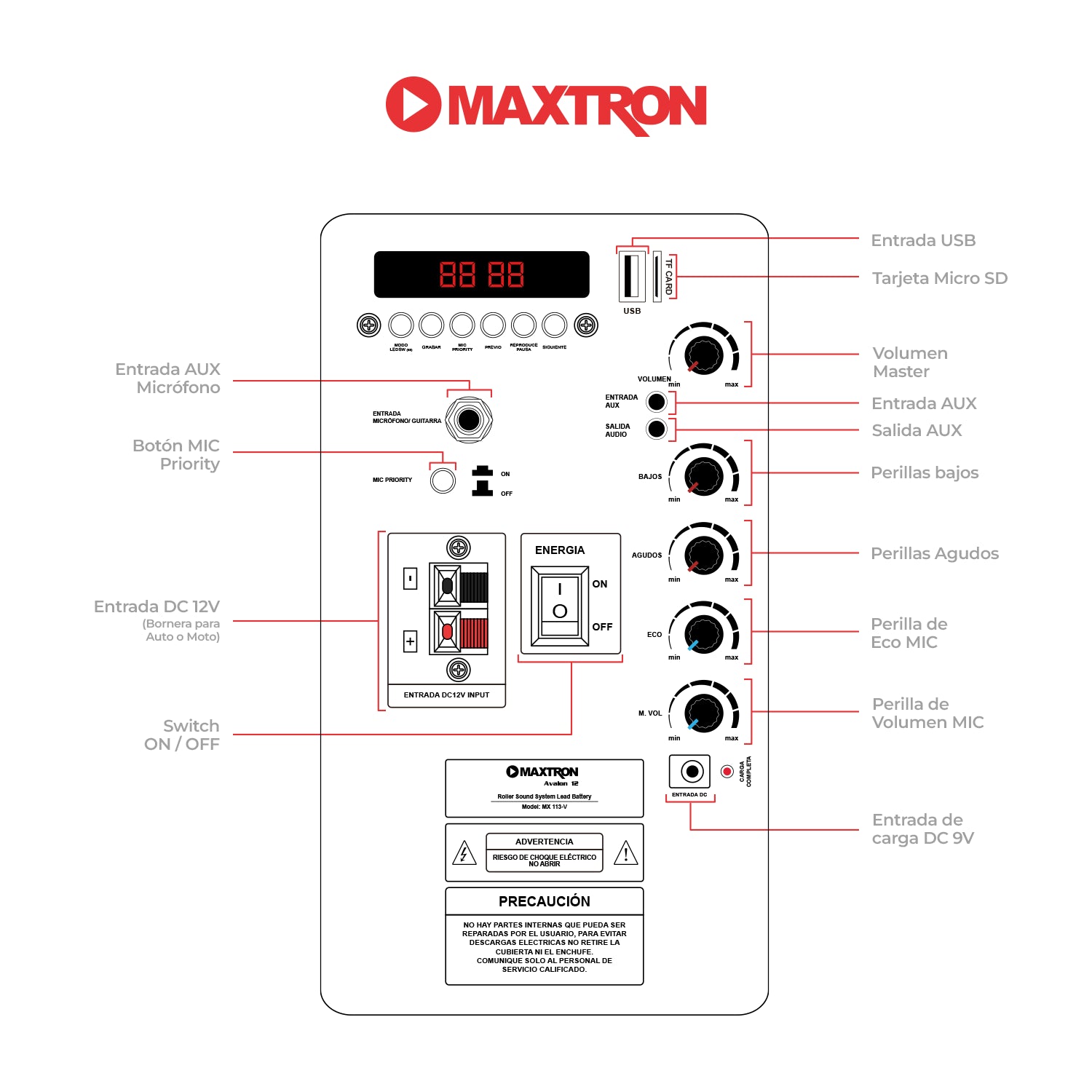 - Entrada de Micrófono/Guitarra de 6.35 mm para Fuentes de Audio Externas