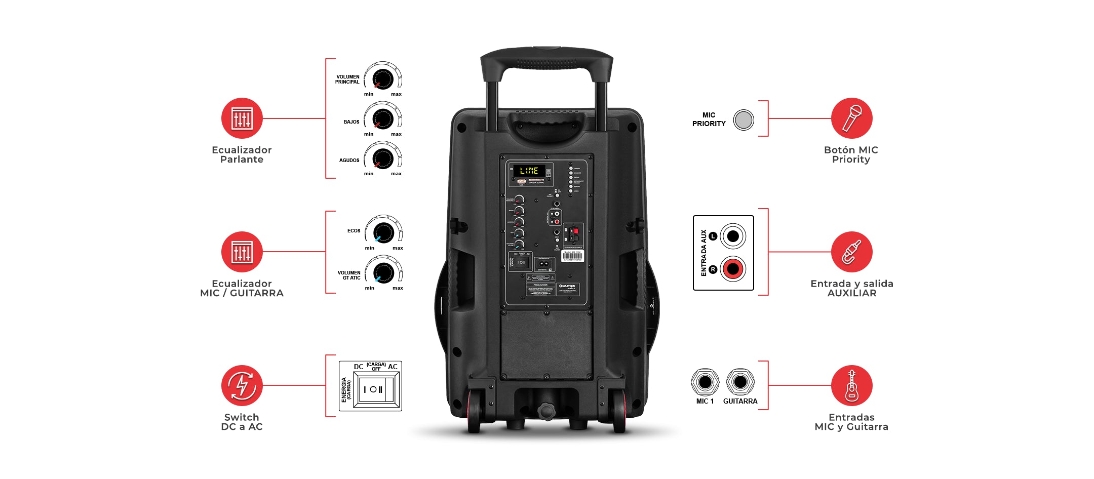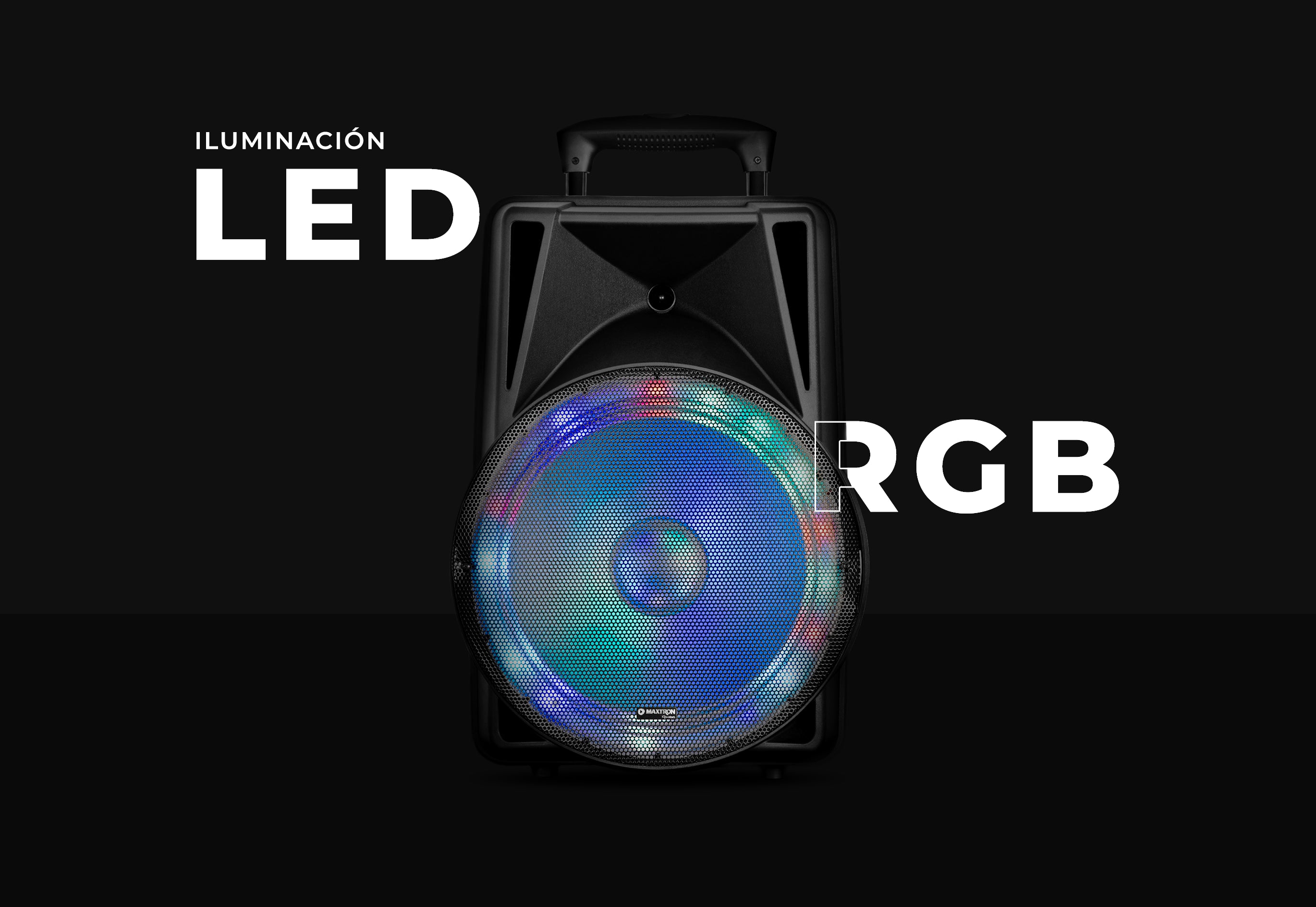 La iluminación RGB crea un ambiente de fiesta único. Con colores vibrantes y efectos de iluminación dinámicos, el parlante será el centro de atención en cualquier evento.