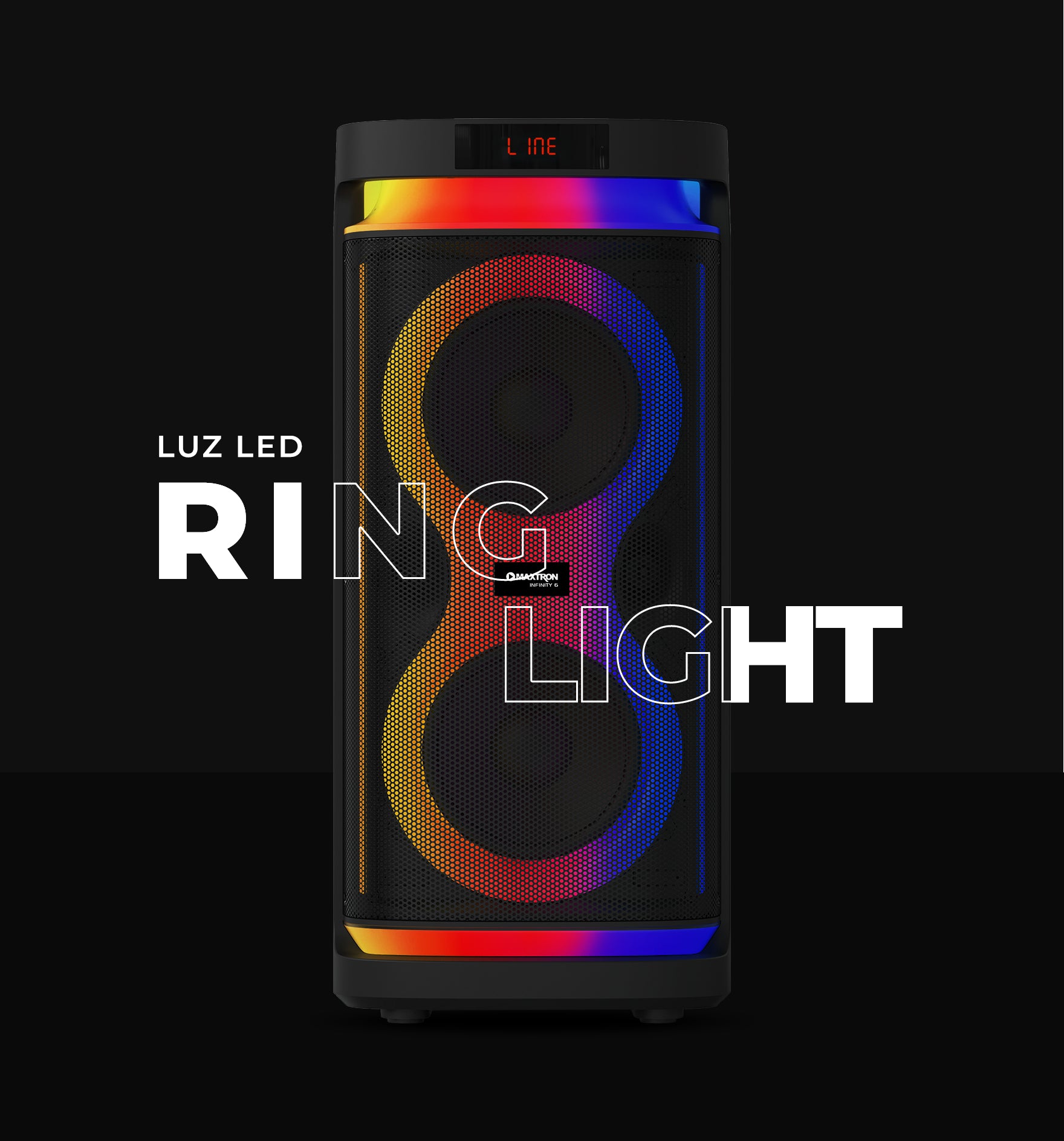 La iluminación RGB Ring Light crea un ambiente de fiesta único. Con colores vibrantes y efectos de iluminación dinámicos, el parlante será el centro de atención en cualquier evento.