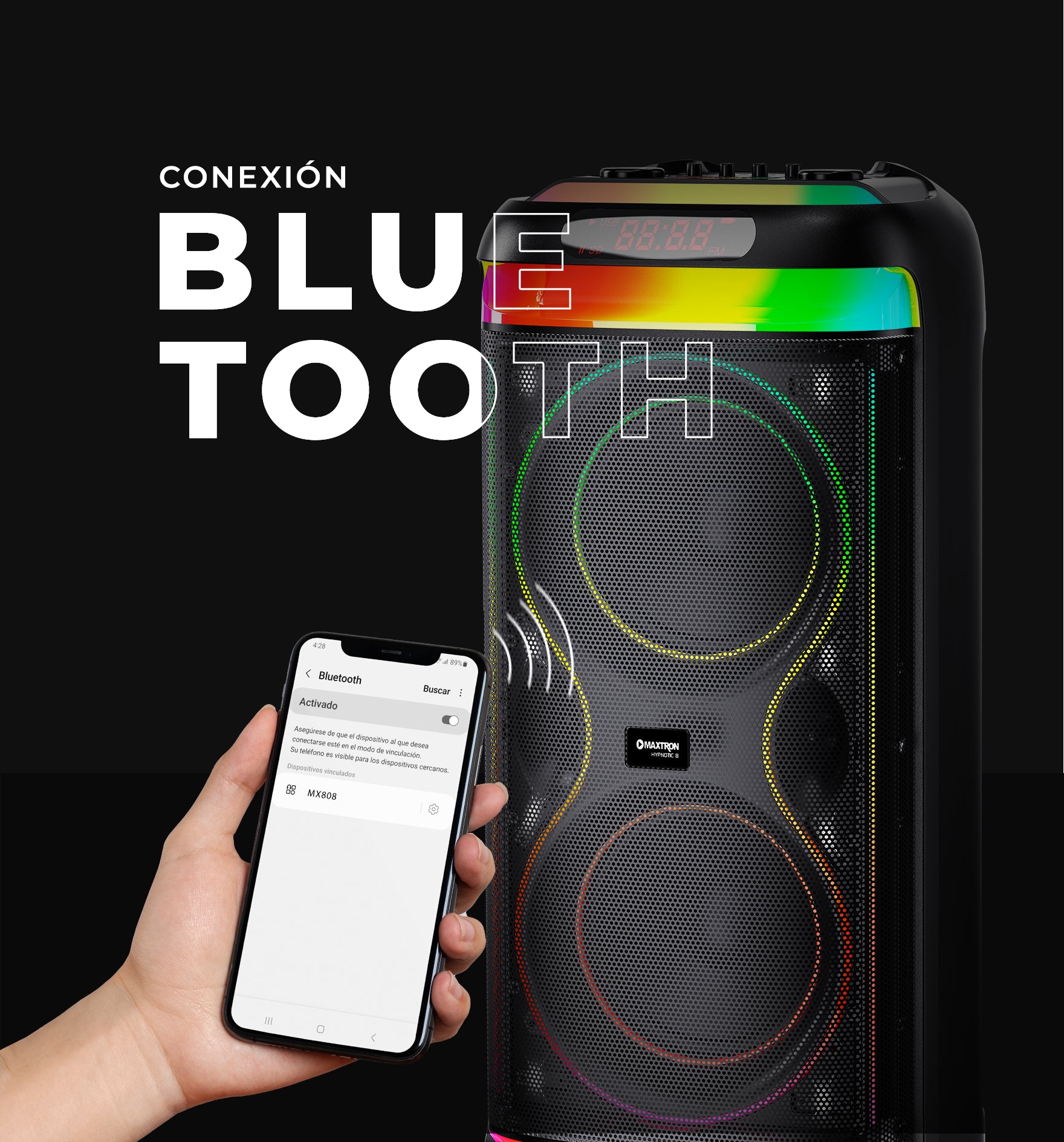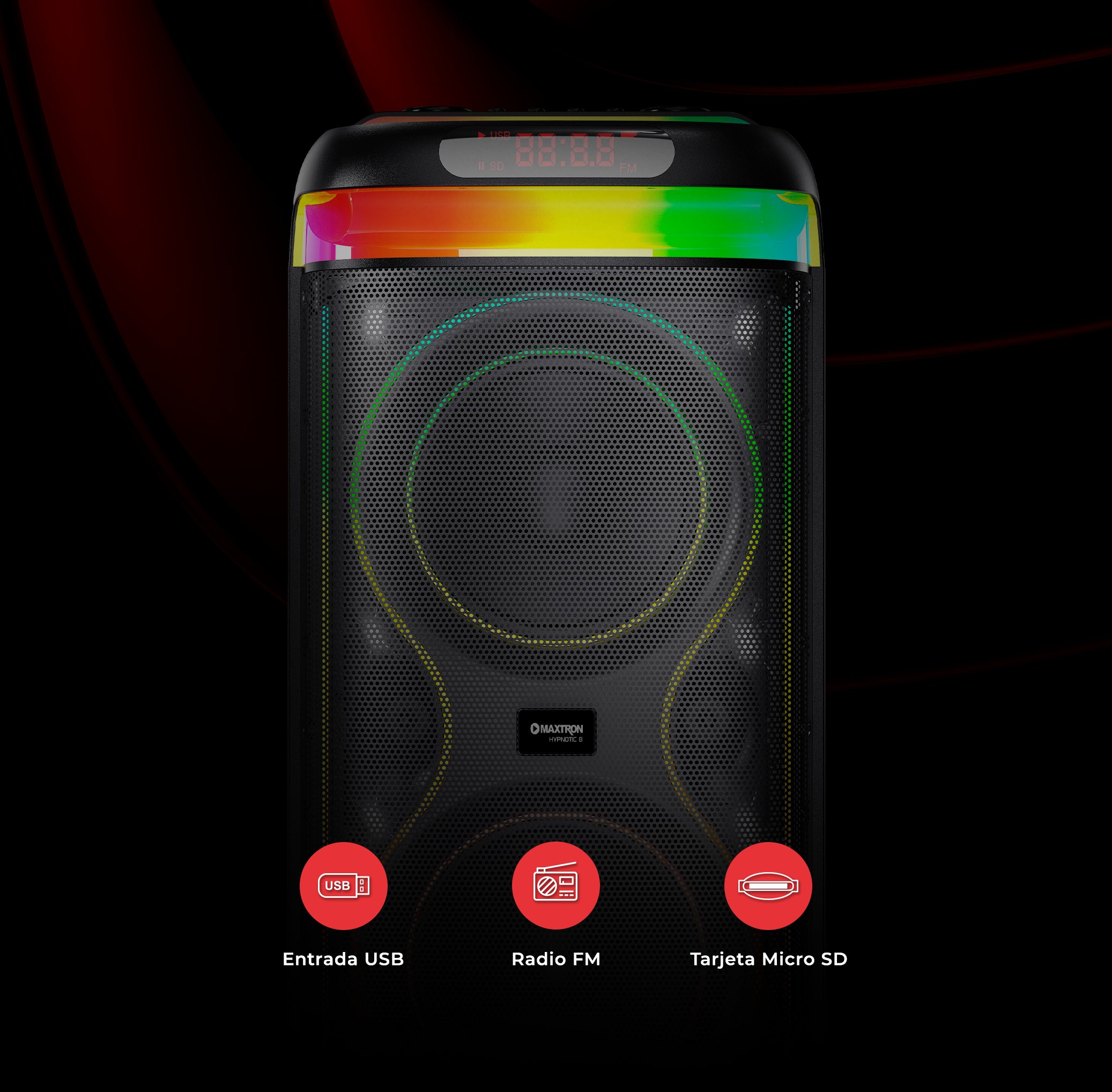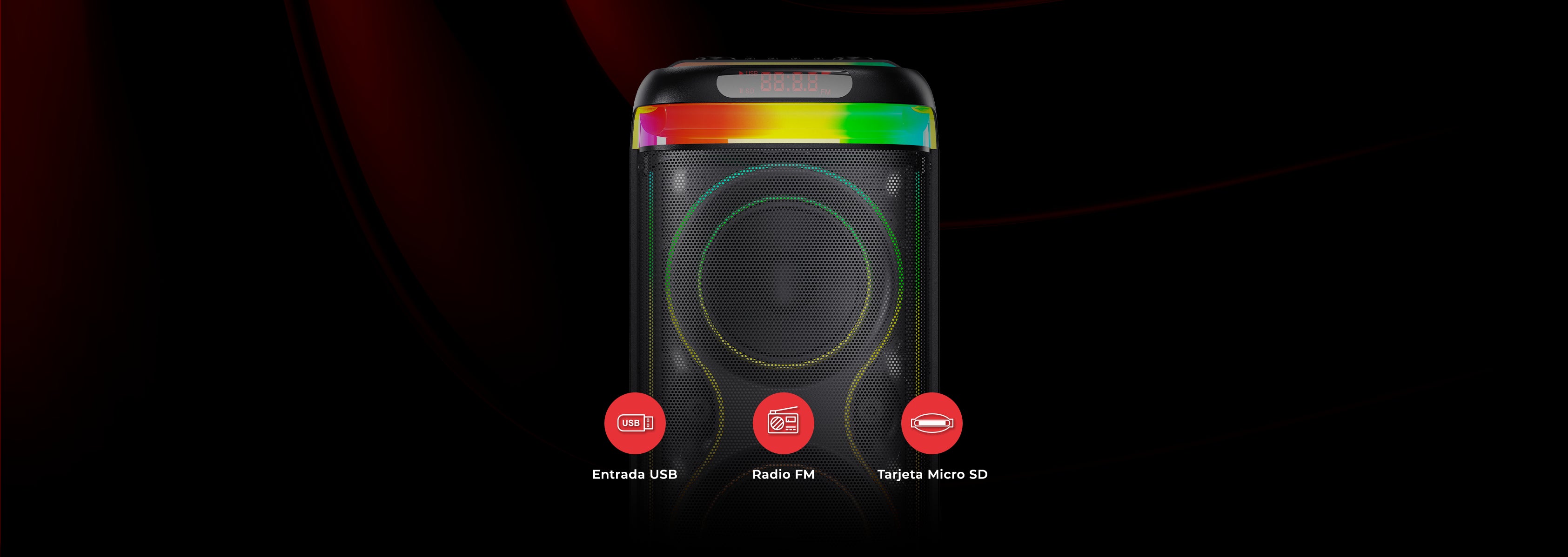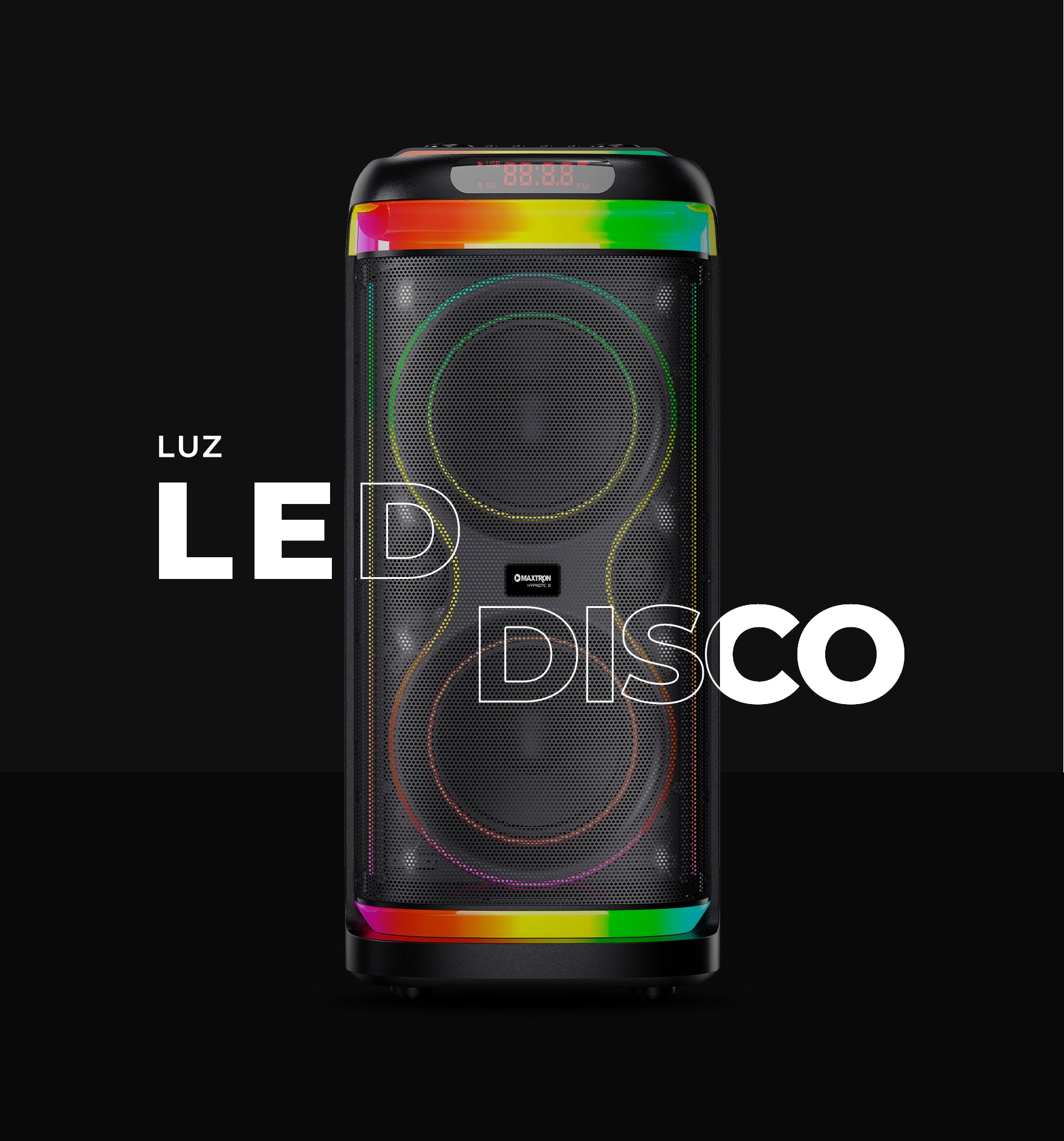 La iluminación LED Disco crea un ambiente de fiesta único. Con colores vibrantes y efectos de iluminación dinámicos, el parlante será el centro de atención en cualquier evento.