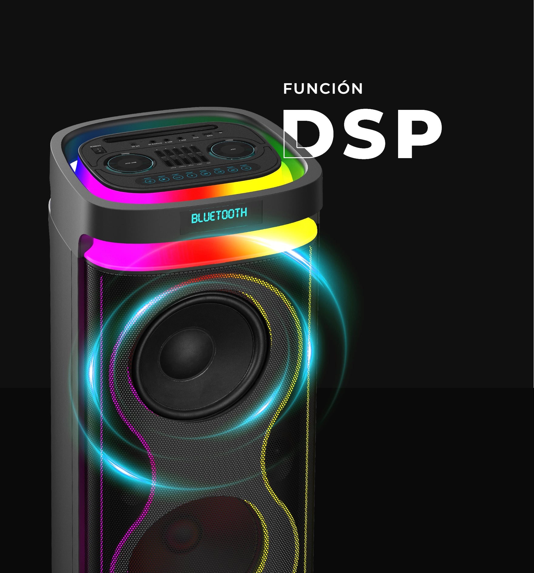 La tecnología DSP (Digital Signal Processing) ofrece un sonido claro y preciso. Disfruta de una experiencia de audio inmersiva y potente, con una calidad de sonido superior.