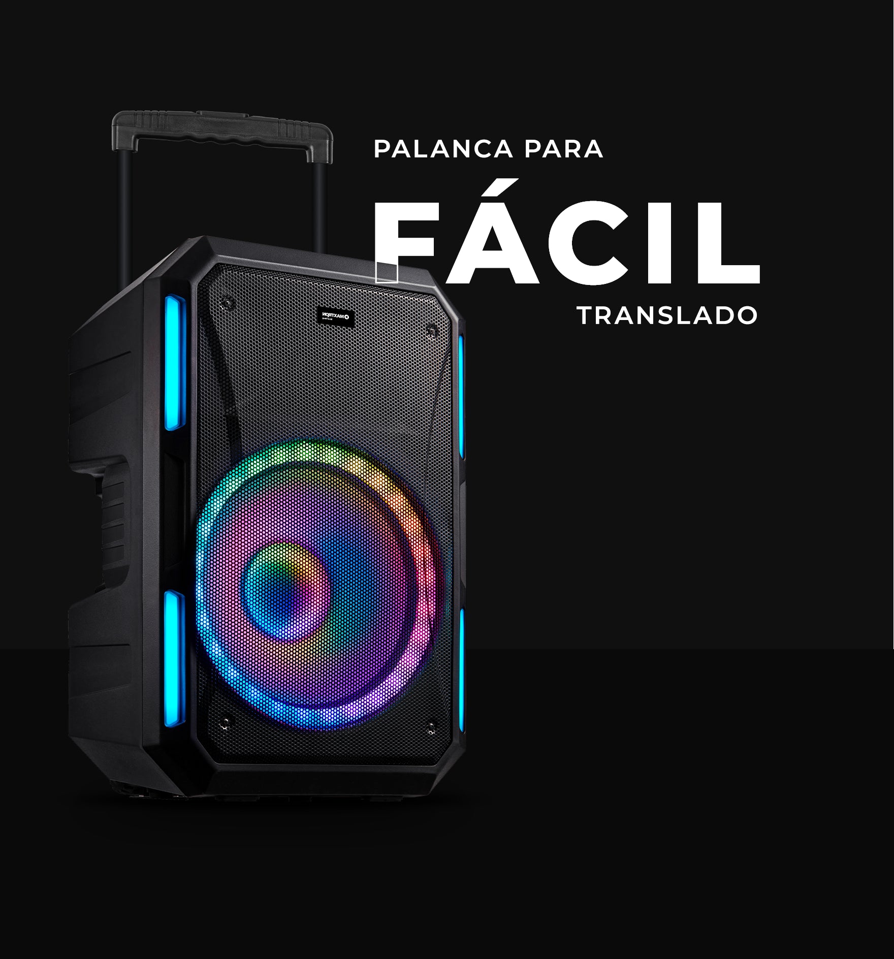 La iluminación RGB Flaming crea un ambiente de fiesta único. Con colores vibrantes y efectos de iluminación dinámicos, el parlante será el centro de atención en cualquier evento.