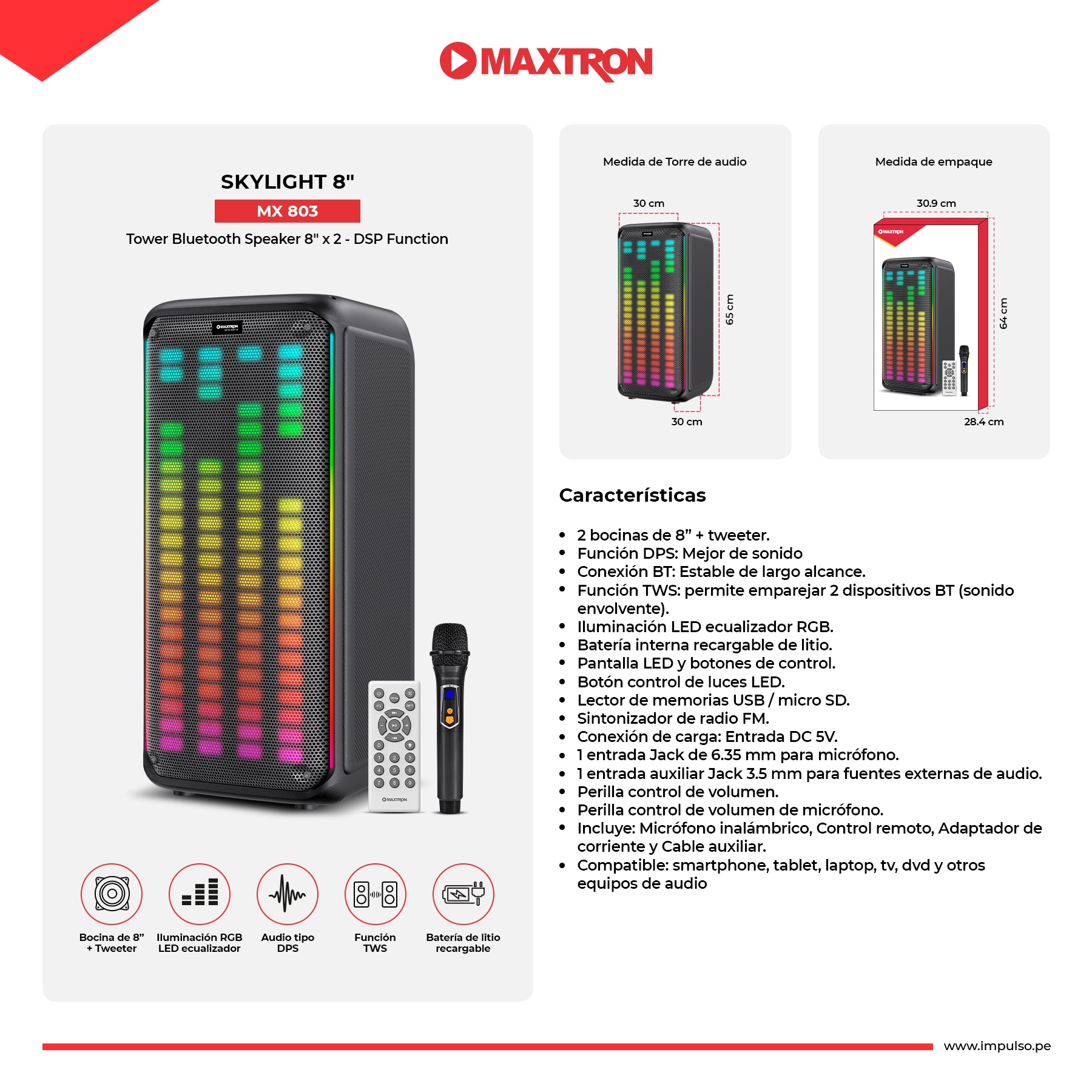 Torre de Sonido 8"x 2 Skylight 8" MX 803
